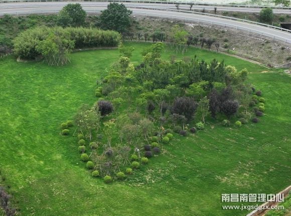 该中心因地制宜、适地适树,以乔灌木搭配、花草林木搭配、落叶树与常绿树搭配等方式,致力营造层次丰富、色彩多样、季相分明、排布精致的绿色景观高速公路环境。据介绍,该工程种植苗木达 11万余株,苗木种类达36种,通过种植月季、红继木球、紫竹等彩化苗木并配以景观石,让南昌南收费站广场绿化等环境焕然一新。