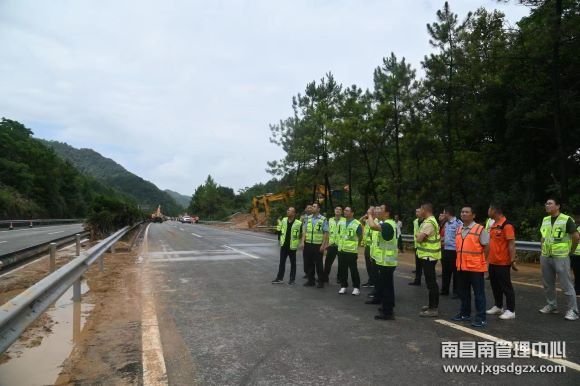 省厅、集团等领导在沪昆高速玉山段指挥防汛抢险