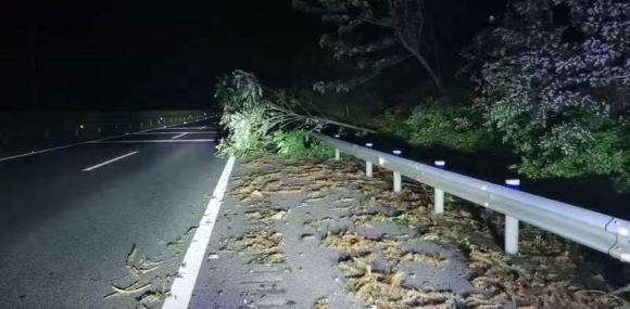 南昌南管理中心东乡养护所洛市养护站在4月25日夜间巡查中,该站养护人员发现所辖昌宁高速段内K115+700右幅一棵大树倒伏,横亘在应急车道和部分行车道,存在极大行车安全隐患。