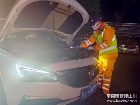 1月13日凌晨12点多,沪昆高速梨温路段K621南昌方向发生一起多车追尾事故,造成了路面大面积拥堵。那天正好是老贺值班,他接到电话后,一边安抚司机的情绪,一边更换工作服,随后叫上队员赶赴现场。在现场,他组织安排人员分工,制定了最快速的救援方案。同时,引导车上所有人员前往安全地带等候,使用反光锥将现场做好安全围蔽。经过40分钟的努力,路面终于恢复了正常通行。忙完后返回单位,刚躺下没多久,K618上海方向有一辆故障车需要救援,他和队友们又从温暖的被窝中爬了起来,赶赴现场。