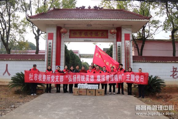 近日,在全国第60个“学雷锋纪念日”来临之际,南昌南管理中心杜市所党支部积极组织广大党员、团员及志愿者深入杜市镇敬老院开展“弘扬传统美德 赓续雷锋精神”主题党日志愿服务活动,以实际行动弘扬和践行雷锋精神。
