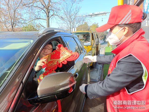 “送你一对平安福,祝您平安幸福每一天!”春运首日,“路灯”志愿者在陈明亮的带领下,身着火红志愿服,以温暖的微笑、热情的服务,吸引了收费现场广大过往司乘人员的目光。通过站口设置的真情服务咨询台,为广大司乘人员送上了一张张火红“福”字、一份份安全指南;一句问候、一杯热水,小小的举动让司乘倍感喜悦和温馨。让他们高高兴兴带上幸福、平安回家,也让广大司乘感受到浓浓的年味。