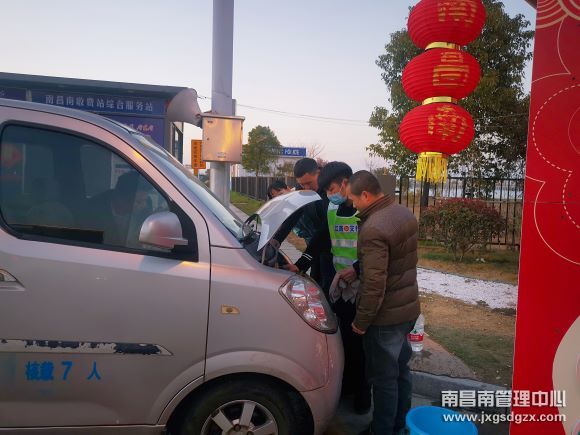 2月27日晚17点30分,在南昌南管理中心出口一辆面包车发生故障,当班收费员发现情况后立即上报至值班站长,并获得同事协助疏导其他车辆,合力将此车推至服务站。