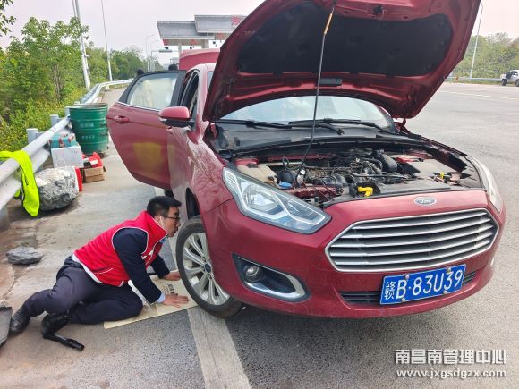 4月12日,一辆小车因抛锚被困于南昌南管理中心双金收费站,值班站长“变身”修理工帮其脱困。