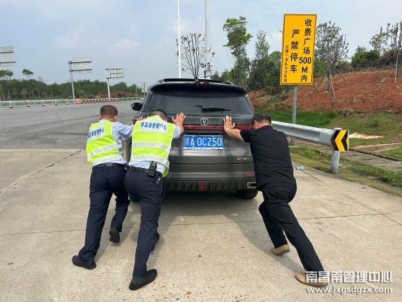 4月20日,一辆小车因发生故障停在南昌南管理中心丽村收费站的收费车道,收费站工作人员热心伸出援手,获司乘点赞。
