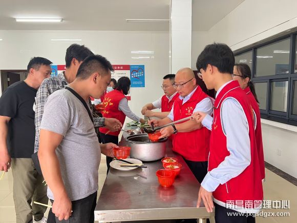 次日上午8点左右,在得知车子还未修好,志愿者们立即将所有司乘引到食堂,并为他们端来了热气腾腾的面条、米粥、小菜和矿泉水。