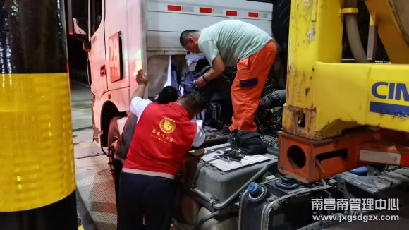大货车在收费站抛锚 高速志愿者热心帮助排除故障