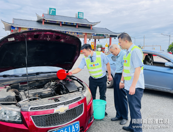6月18日,南昌南管理中心广福收费站下高速方向一辆车头冒烟的小型客车紧急停靠在收费广场,该站工作人员热心援手,帮助排忧解难。
