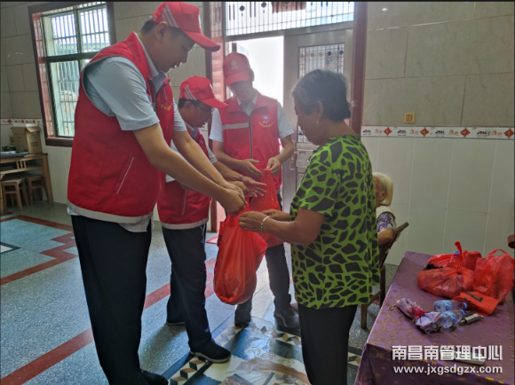 时值盛夏高温时节,8月15日下午,南昌南管理中心新干北收费站组织青年志愿者们深入新干县大洋洲镇邓家陂村邓家陂自然村,开展“高速映山红”关爱留守老人送清凉活动。