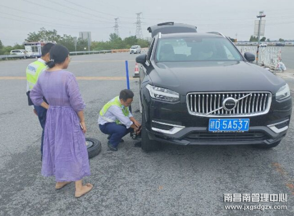 9月22日,一位车主行驶至南昌南管理中心南昌南收费站入口内广场处突遇爆胎,幸运的是,该收费站员工热情帮助让她化险为夷。