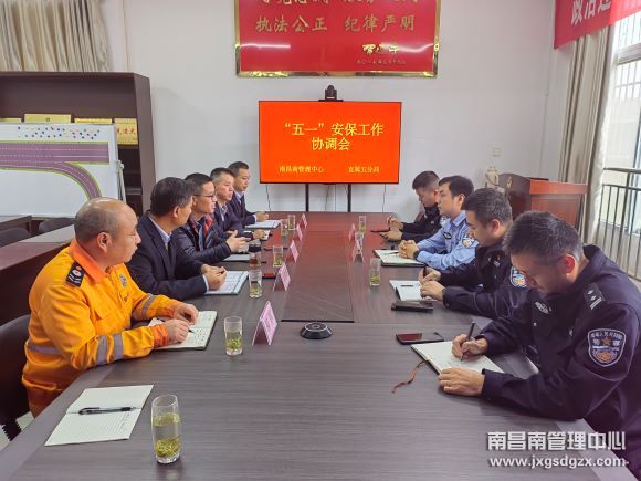 4月25日,南昌南管理中心副总经理吴成钢赴鹰潭高速交警直属五分局参加“五一”安保工作协调会,车辆救援大队、收费所相关人员陪同。
