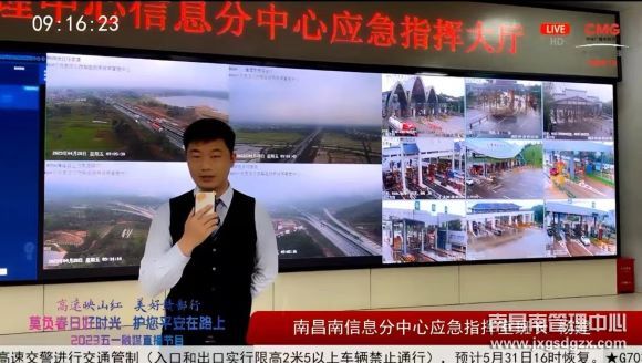 该指挥室直播介绍了五一期间南昌南中心所辖路段的路况情况,并结合节假日路段的运行特点,提前对高速公路节假日和重要时段交通流量进行预测和研判分析。