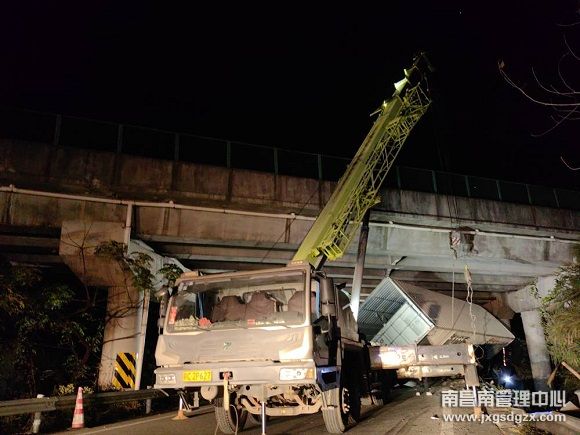 洛市养护站:货车侧翻桥底,联合施救保畅