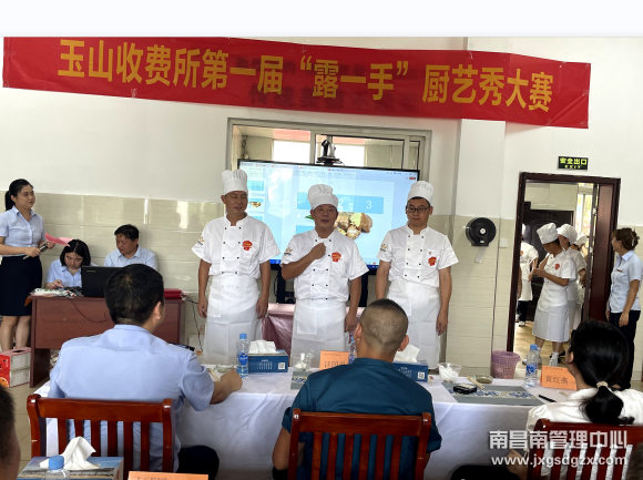 此次厨艺秀比赛共有四支参赛队,分别是综合办公室的“创意美食队”;玉山收费站的“厨艺一般队”;广丰收费站的“食匠先锋队”;上饶东收费站的“厨艺小分队”。四支参赛队用他们灵巧的双手和独特的创意,将平凡的食材化作一道道色香味俱佳的佳肴。经过四轮角逐,最后“厨艺一般队”以火焰一品红、绿芥金罗、茸韵金汤鸡、香腴肉宝四个菜品摘得桂冠。“创意美食队”和食匠先锋队”分别获得第二名和第三名。同时,一盘“香腴肉宝”摘得最佳菜品奖。