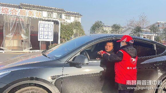 1月1日元旦期间,一场温馨的映山红志愿服务活动正在南昌南管理中心樟树东收费站车道热烈开展。该站志愿者们向过往的司乘人员传递节日祝福。