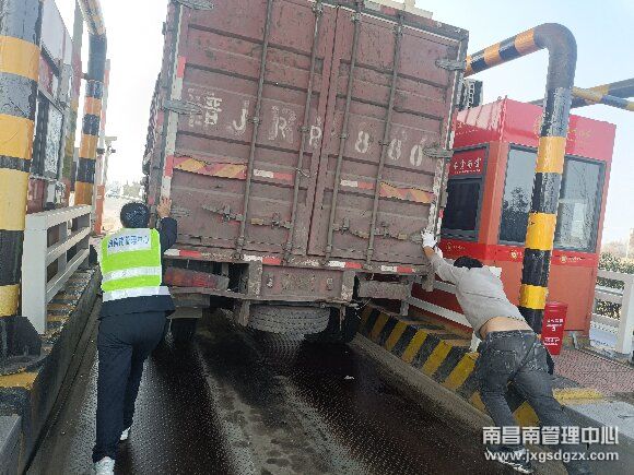 近日,一辆小型货车因故障抛锚被困于南昌南管理中心丰城东收费站收费车道内,工作人员热心帮助解困。