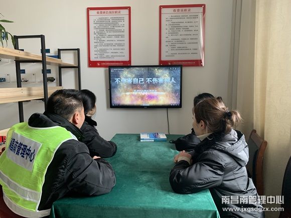 1月25日,南昌南管理中心冈上收费站组织员工观看省国资委制发的第二期《请把安全放心上》和第四期安全警示教育片。