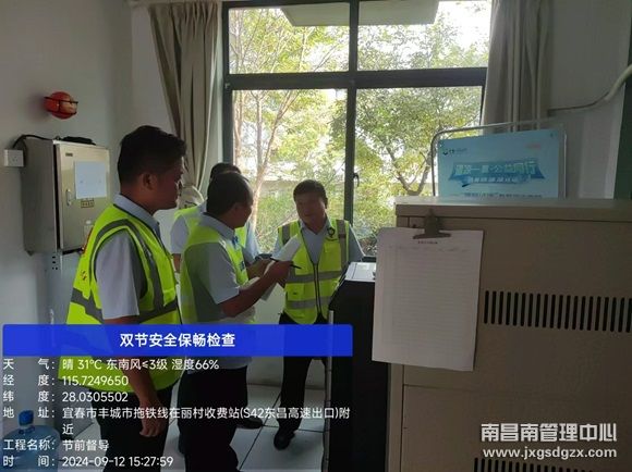 国庆将至,南昌南管理中心樟树东收费所成立节前检查小组,对辖区安全情况展开全面排查,确保假日期间车辆安全顺畅通行。