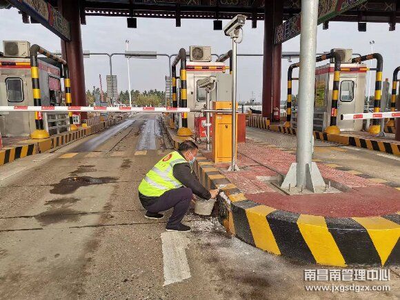 2月6日,南昌南管理中心樟树东收费站在日常安全巡查中发现车道部分安全岛有被剐蹭的痕迹,随着春节临近,该站即将迎来车流高峰,迅速组织人员修补。