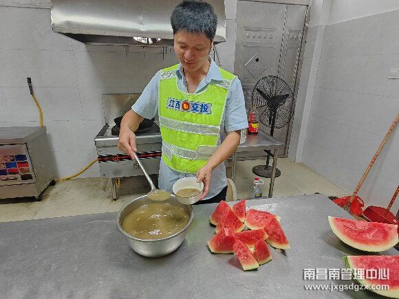 暑热天气,该站注重加强食堂管理工作,严格把控食品采购渠道,确保食品新鲜、卫生。同时通过膳食委员会制定合理的食谱,荤素搭配,午餐提供绿豆汤、西瓜等清热解暑。