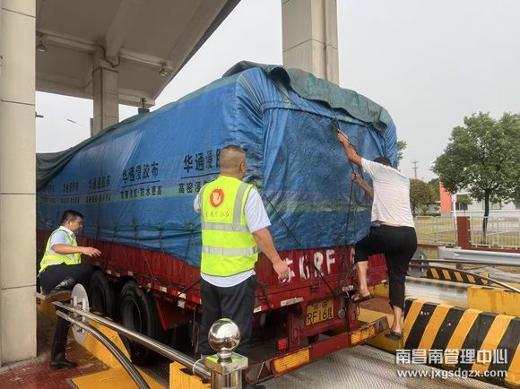 正在执勤的收费班长看到这一幕,赶忙说道:“师傅,别着急,我来帮您!”她一边说着,一边打开备用车道,同时上报值班站长,迅速安排人员前来帮忙。大家分工协作,一人拉住篷布边角,一人帮忙系紧绳索,雨水很快打湿了他们的衣袖和裤脚,可他们丝毫没有在意,只顾着尽快将篷布固定好。