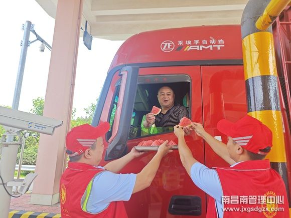 7月30日,正值中伏酷暑,全国多地开启“炙烤模式”。为向坚守在物流运输一线的货运司机传递关怀,南昌南管理中心铁路收费站以“高速映山红”服务品牌为纽带,在服务窗口开展“清凉润暑,情暖征途”公益活动,为过往货车司机送上清甜西瓜、防暑药品及贴心服务。